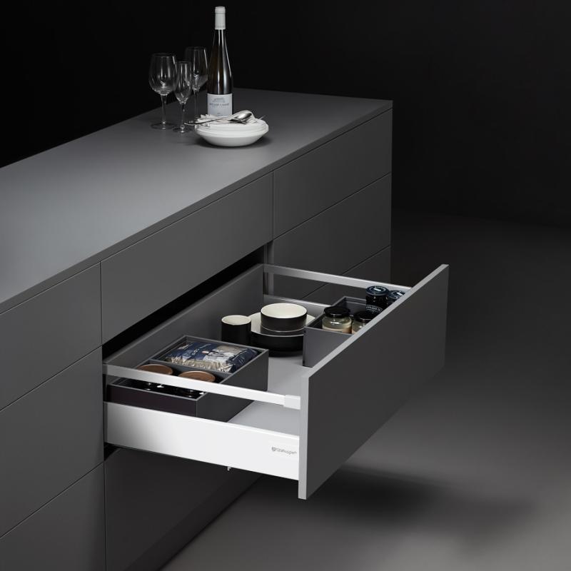 Ящики нового поколения с тонкими боковинами производятся с учетом современных технологий и подходят для различных типов мебели. Широкий выбор глубин, высот бортов и цветовых решений позволяет подобрать идеальное решение для любого интерьера.