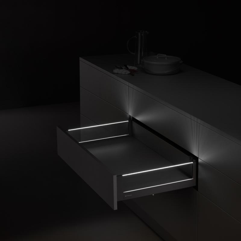 UNIHOPPER GLASS LED MAGIC BOX — это инновационная система выдвижных ящиков со стеклянными боковинами, которая сочетает в себе современный дизайн и передовые технологии. Эта система идеально подходит для создания стильной и функциональной мебели.