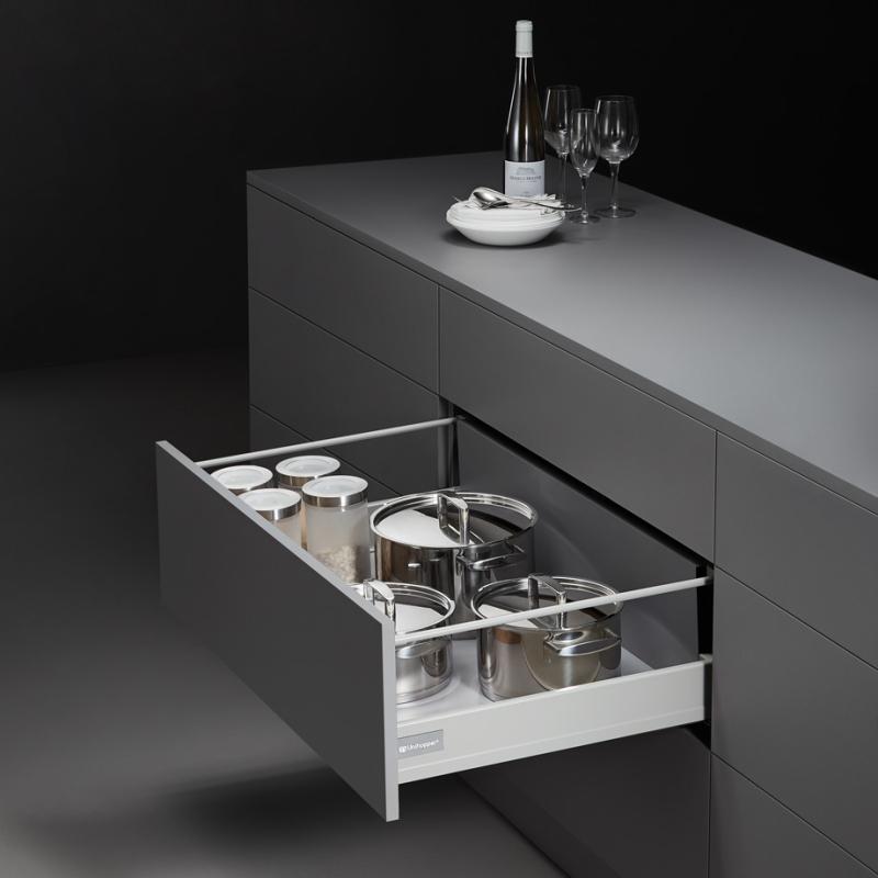 Современная система выдвижных ящиков Unihopper Mental Box с доводчиком — это передовое решение для производителей мебели, стремящихся создать продукцию, отвечающую самым высоким стандартам. Эта система сочетает в себе инновационный дизайн и функциональность, обеспечивая удобство и комфорт в использовании.