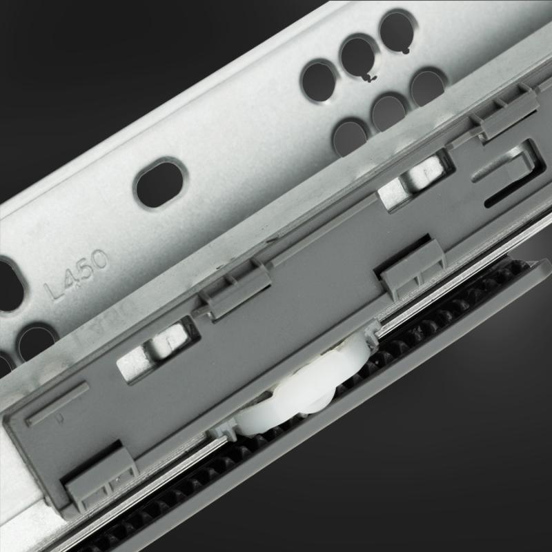 Максимальная допустимая динамическая нагрузка составляет 50 кг, что делает направляющие подходящими для тяжелых выдвижных ящиков.