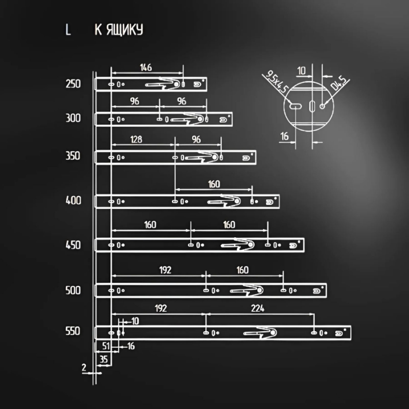 Шариковые направляющие полного выдвижения UNIHOPPER 550 мм H=45мм с доводчиком цинк