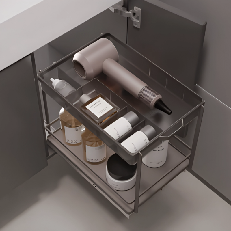 Выдвижная мульти-корзина для ванной комнаты – это изящное решение для тех, кто стремится к безупречному порядку и рациональному использованию каждого сантиметра пространства. Её двухуровневая конструкция позволяет организованно разместить значительное количество вещей, а направляющие обеспечивают мягкое и бесшумное скольжение при каждом использовании.