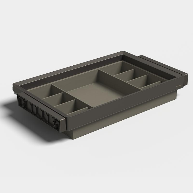 Выдвижная полка для белья серая кожа Unihopper в базу 600мм с доводчиком clip-on MONIKA