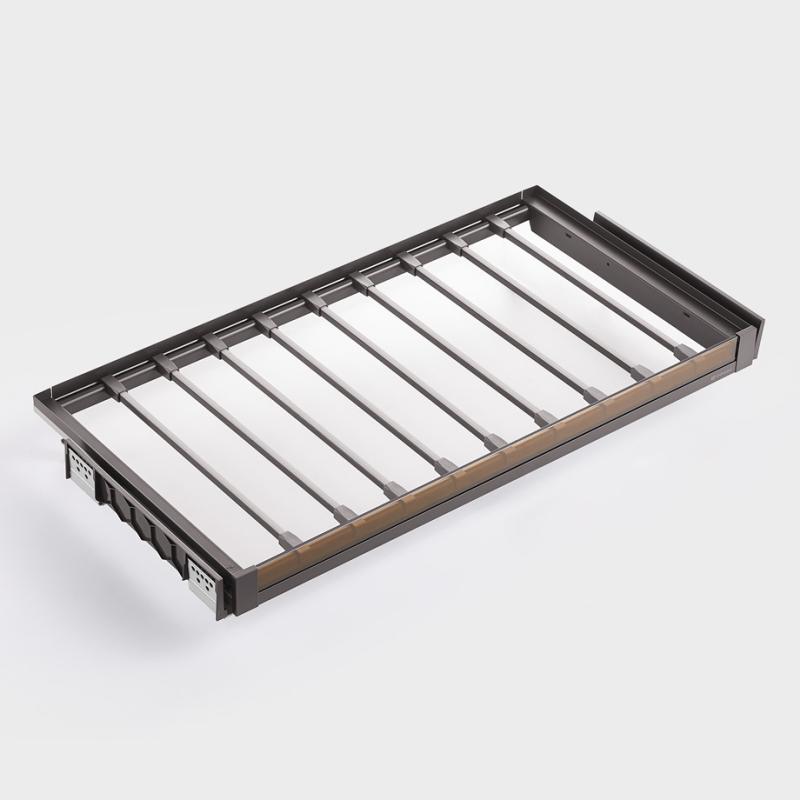 Выдвижная полка для брюк Unihopper — это идеальное решение для делового гардероба, сочетающее строгий и лаконичный дизайн с функциональностью. Эта полка обеспечивает удобство и надежность в хранении брюк.